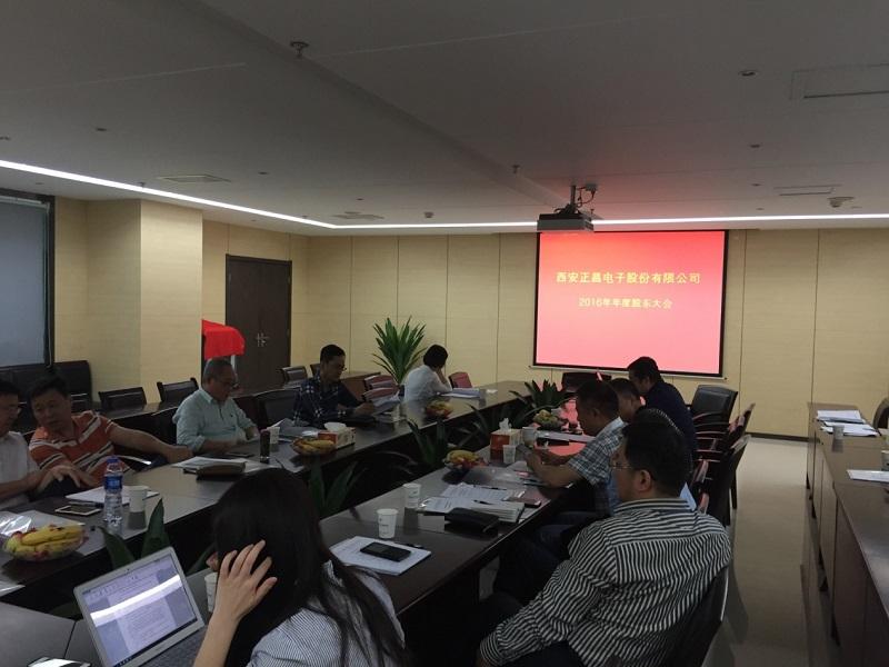 2017年5月16日上午,西安正昌電子股份有限公司2016年年度股東大會在陜西電子研究院會議室召開,會議由公司董事長韓琳先生主持,公司股東(股東授權代表)及部分公司董事、監事、高級管理人員參加了會議。會議首先由公司董事長韓琳先生至歡迎辭,并就公司2016年經營情況及2017年經營計劃擇要向參會股東進行了介紹:2016年,公...